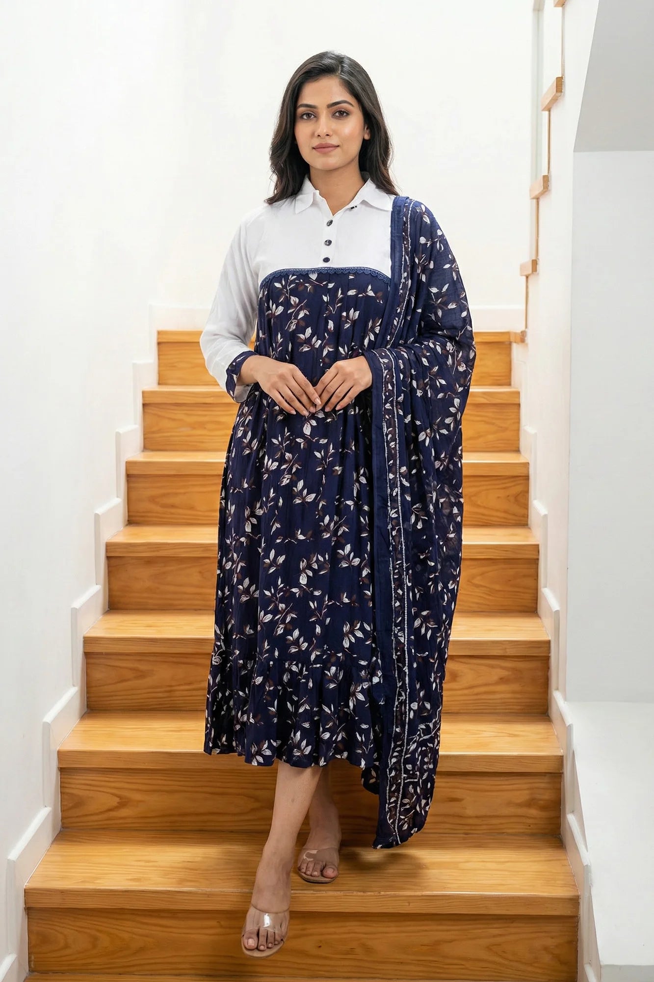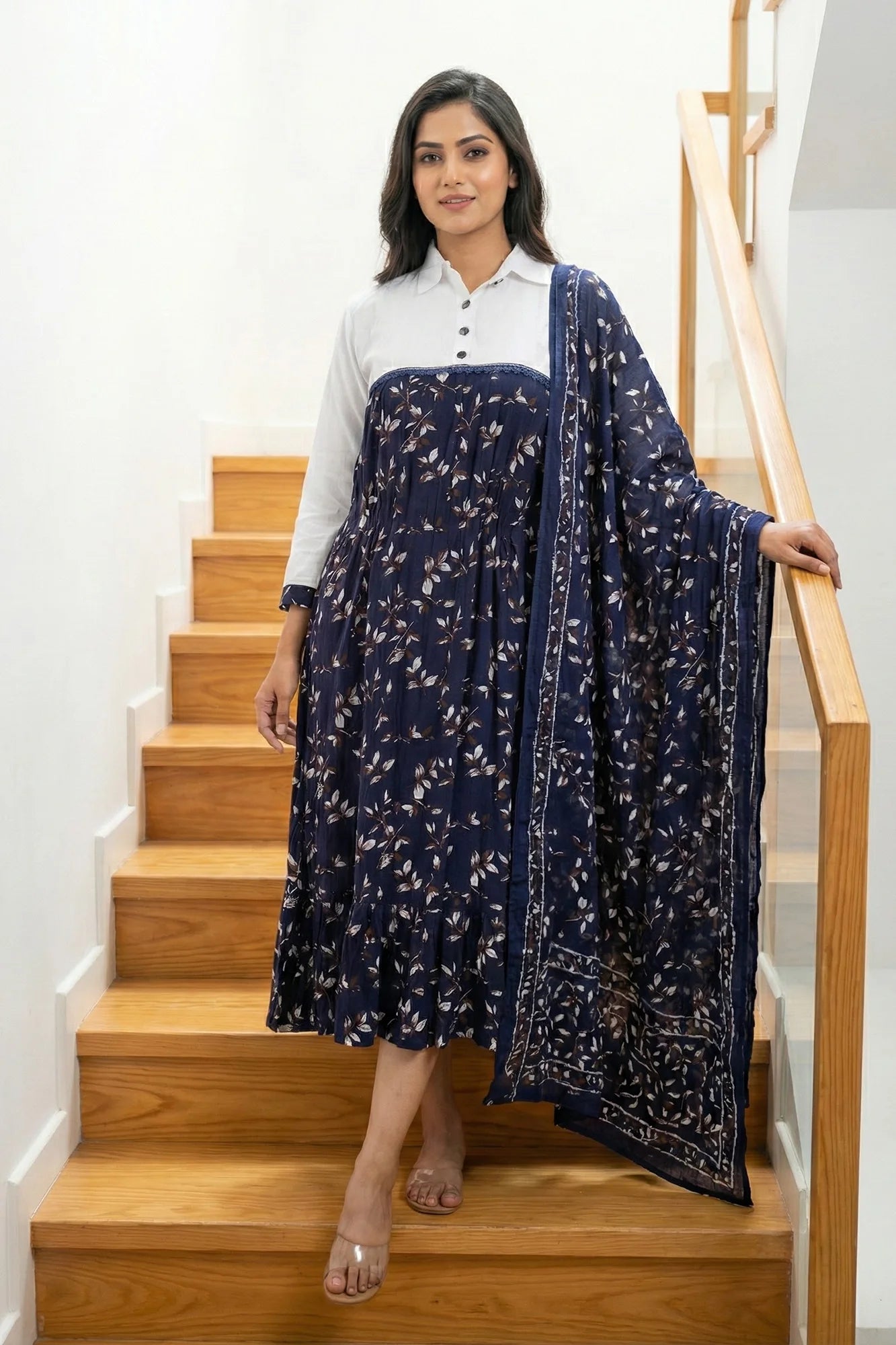 Botanical Print Fusion Set with Dupatta