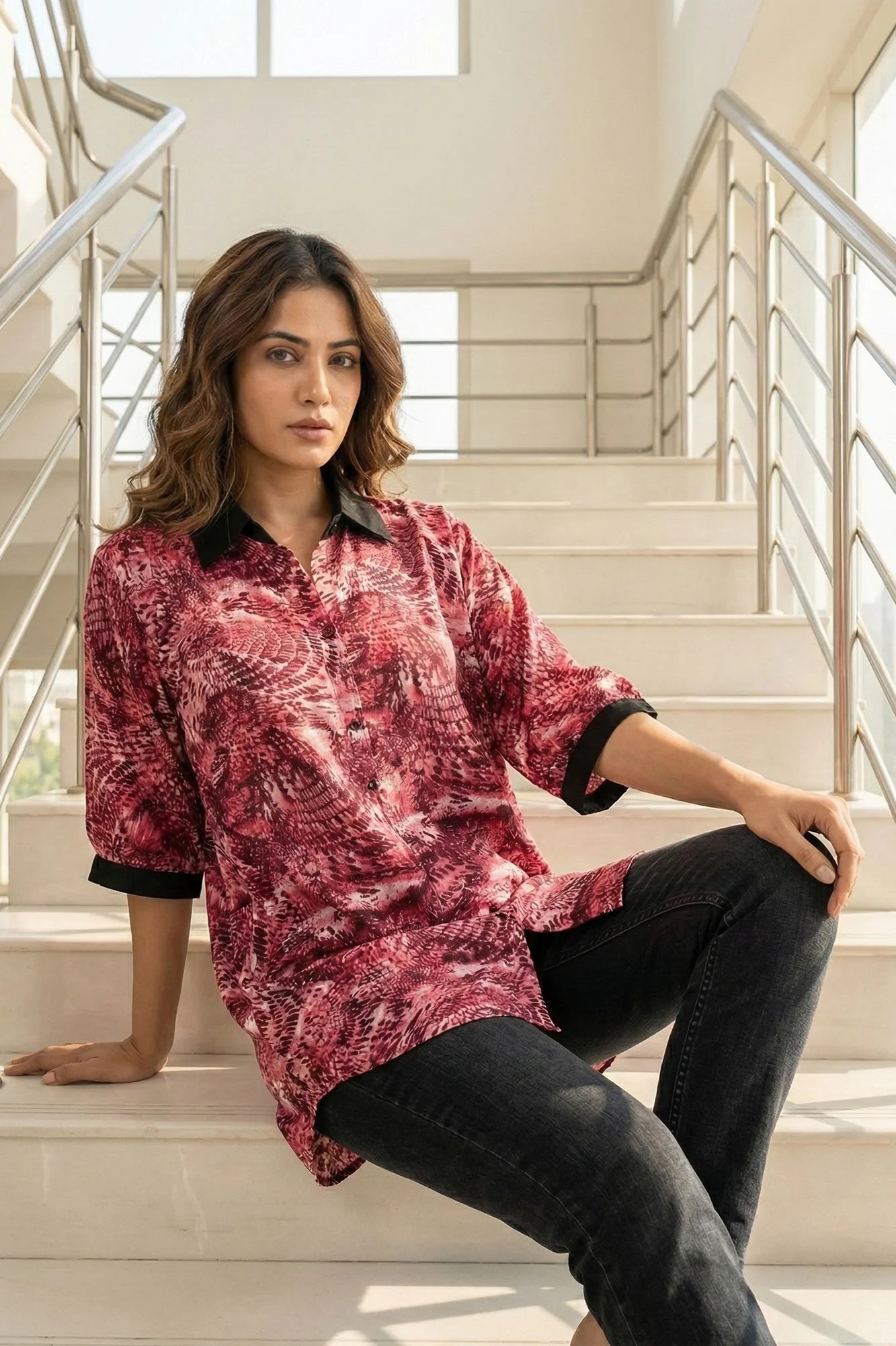 Elevate your everyday style with this chic button-down shirt, featuring a striking, highly detailed abstract print that adds texture and... Read more