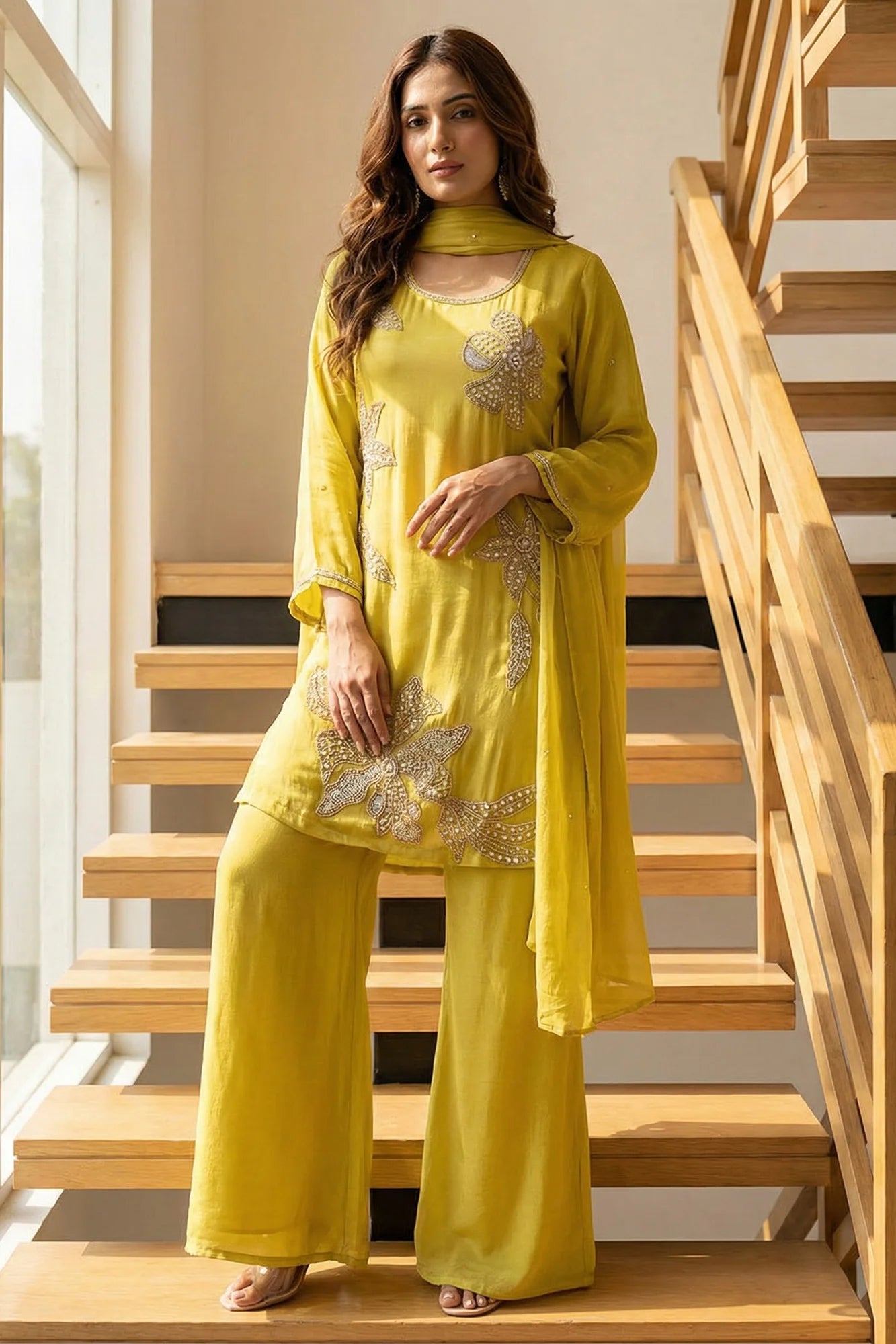 Elegant Floral Embroidered Suit Set