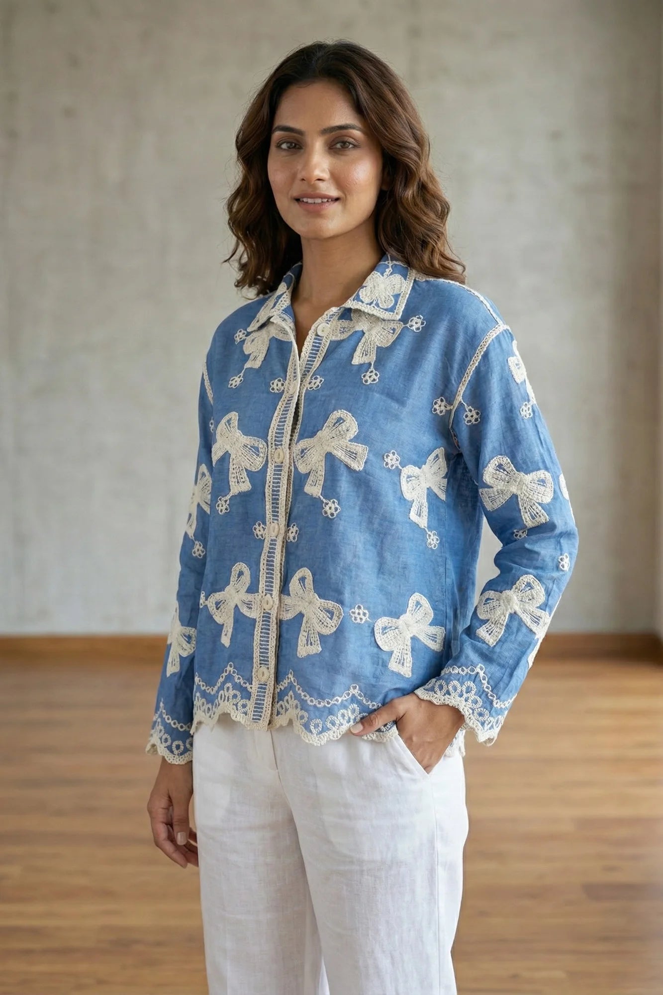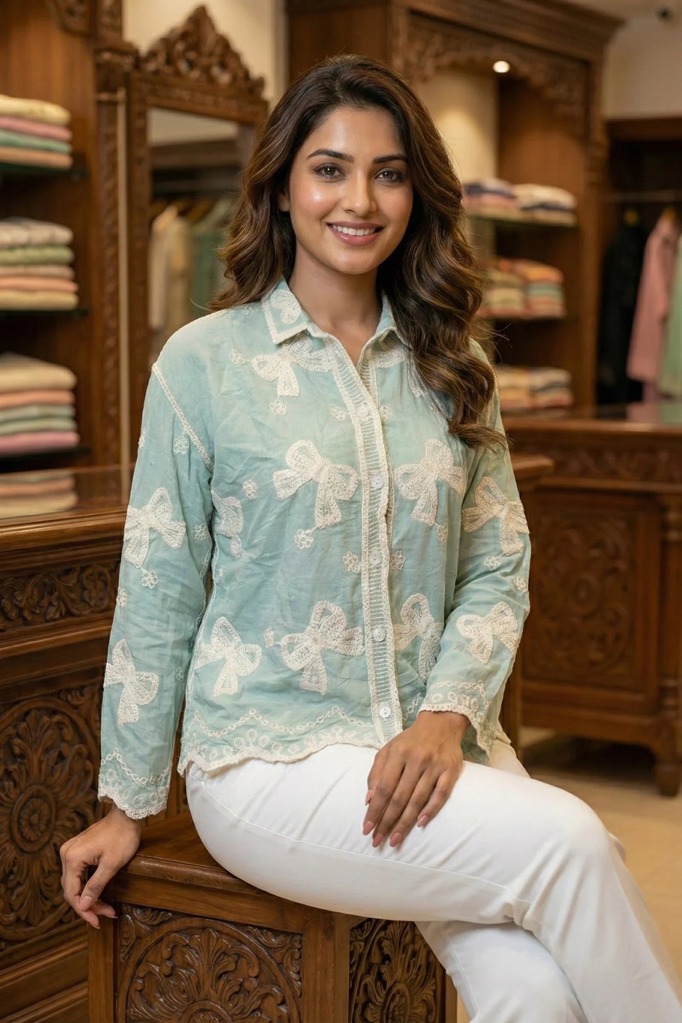Elevate your casual wardrobe with this charming button-down shirt, featuring intricate embroidery that blends playful elegance with artisanal detail. The... Read more