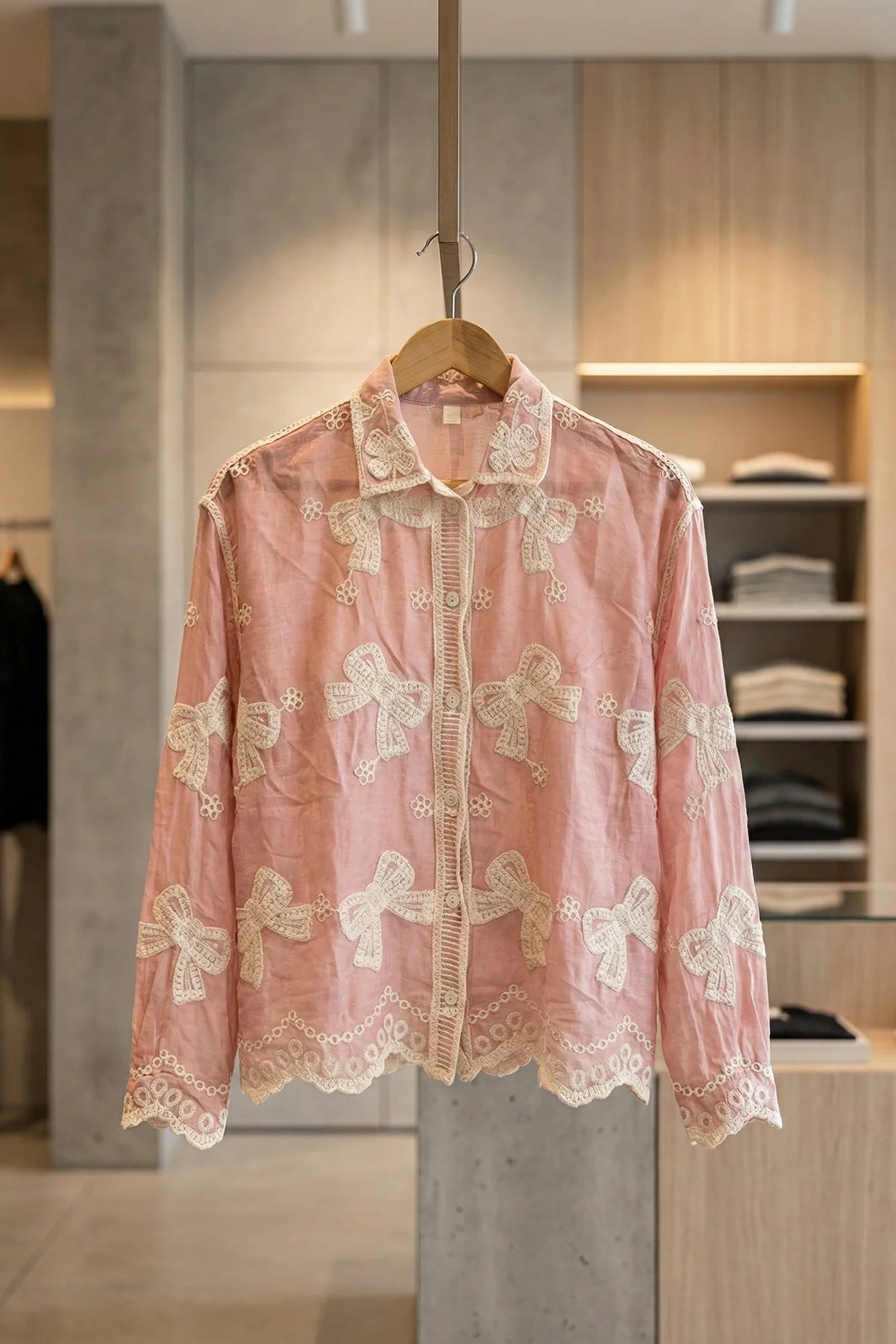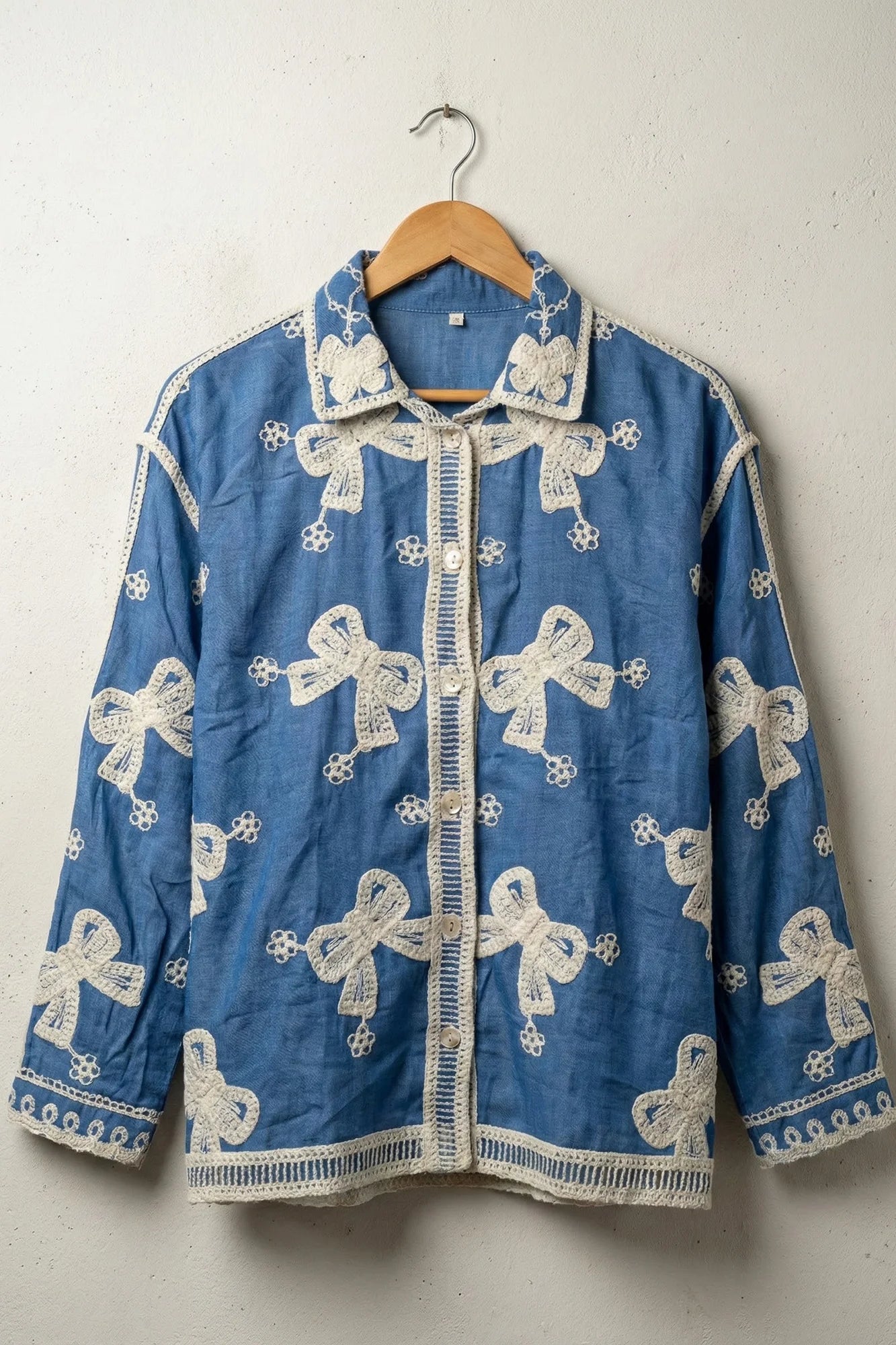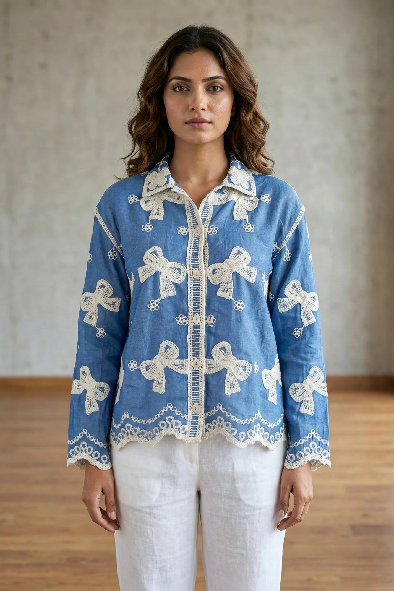 Embroidered Bow & Scallop Hem Shirt