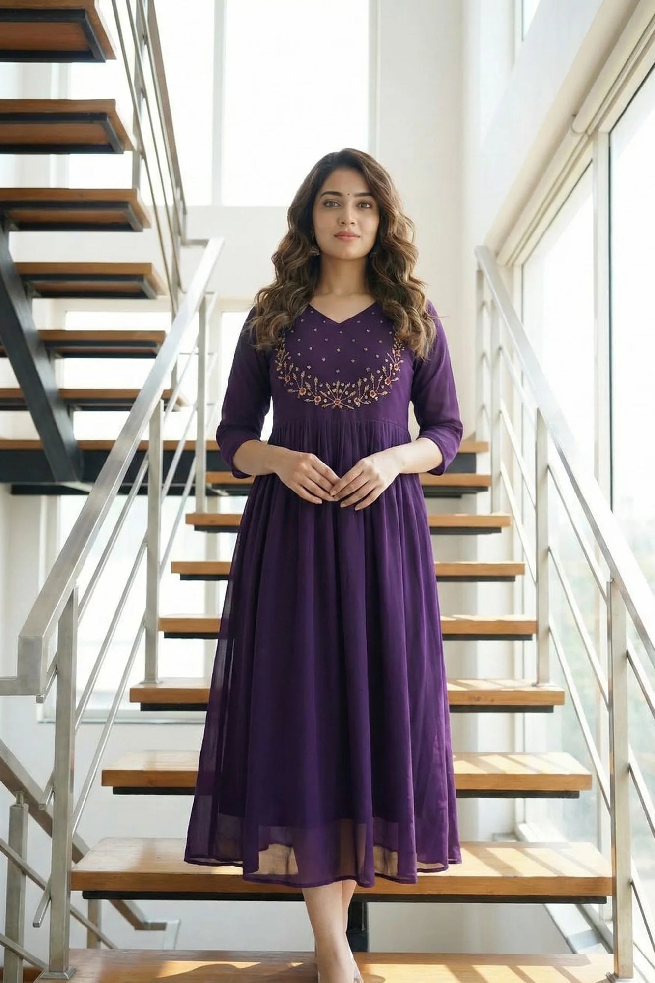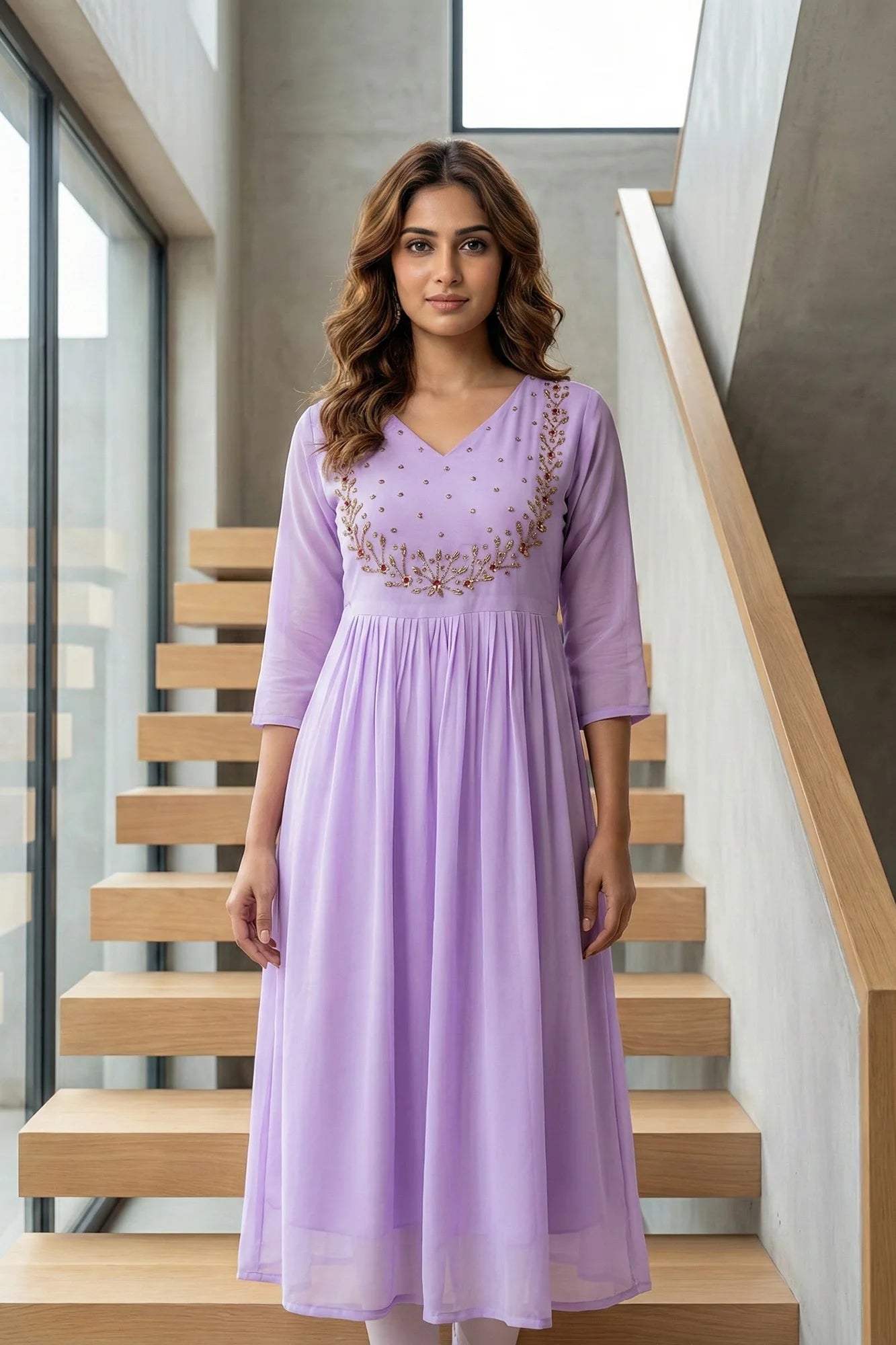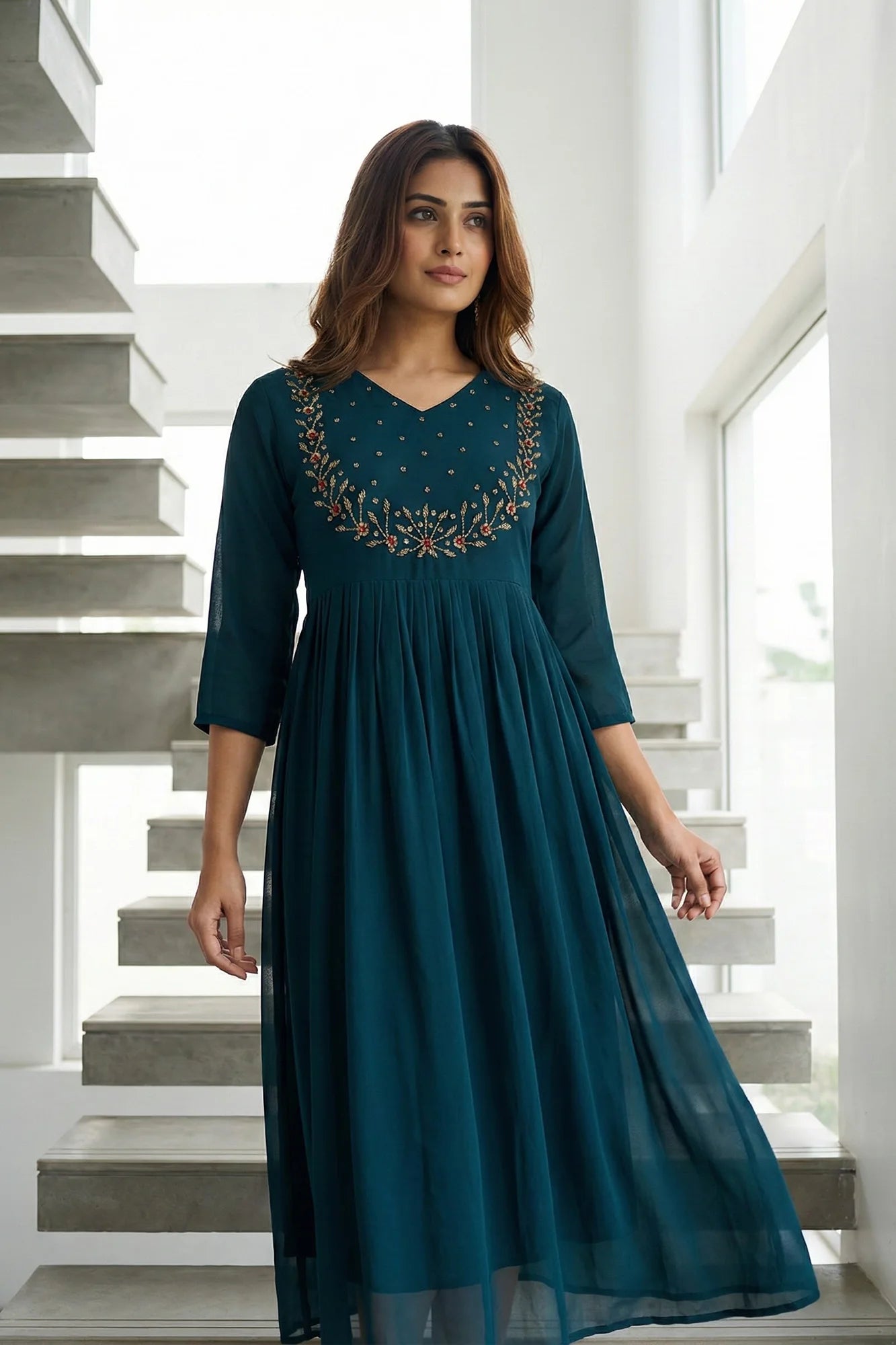 Exquisite Georgette A-Line Kurti with Hand Embroidery