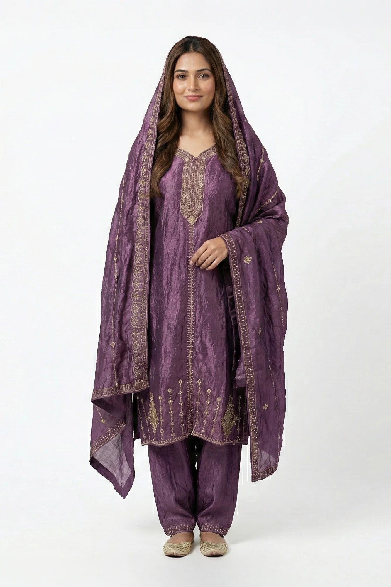 Luxe Crushed Silk Embroidered Palazzo Suit Set