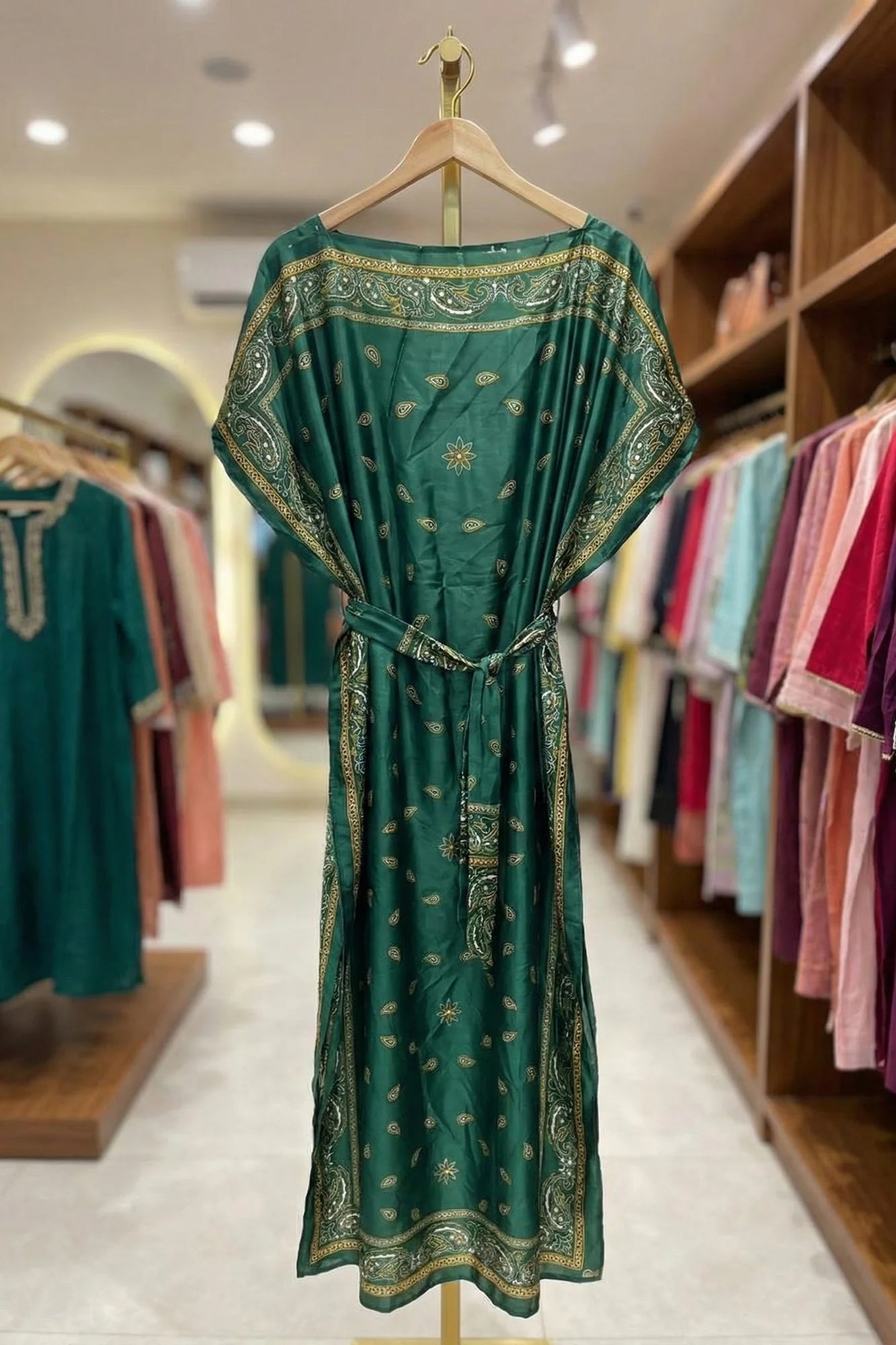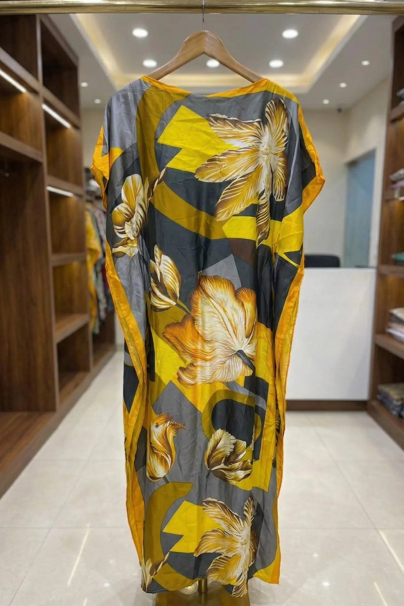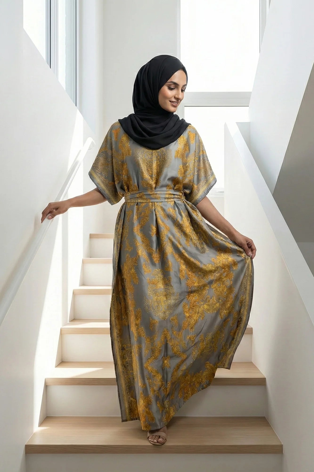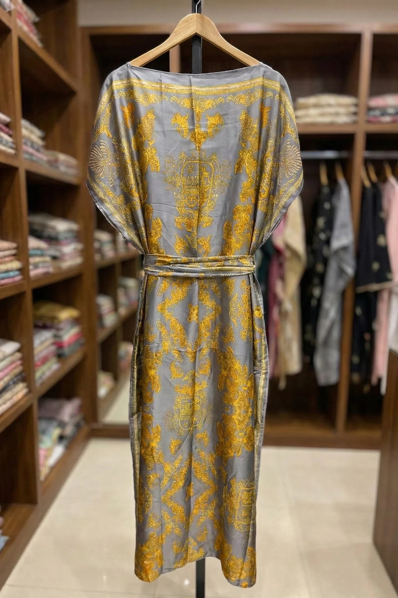 Luxe Jacquard Satin Kaftan with Print Detail