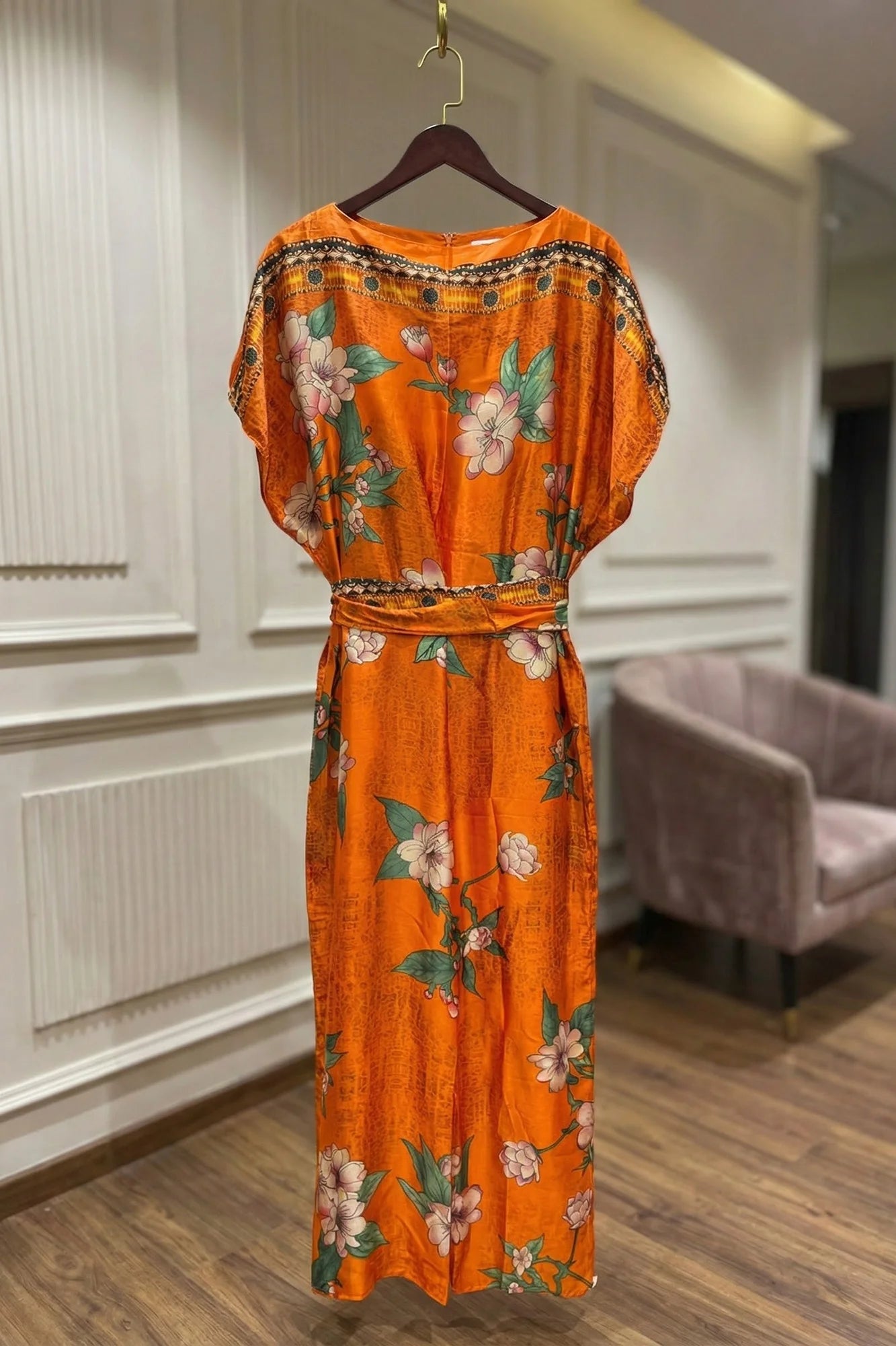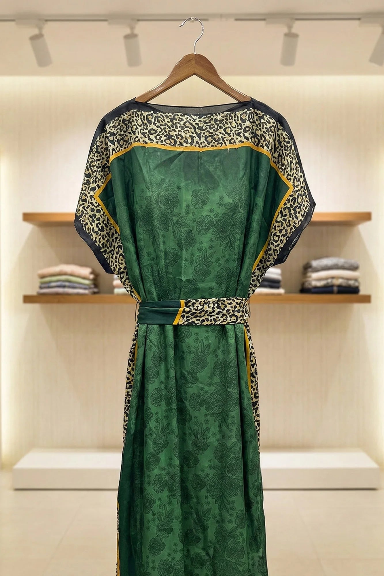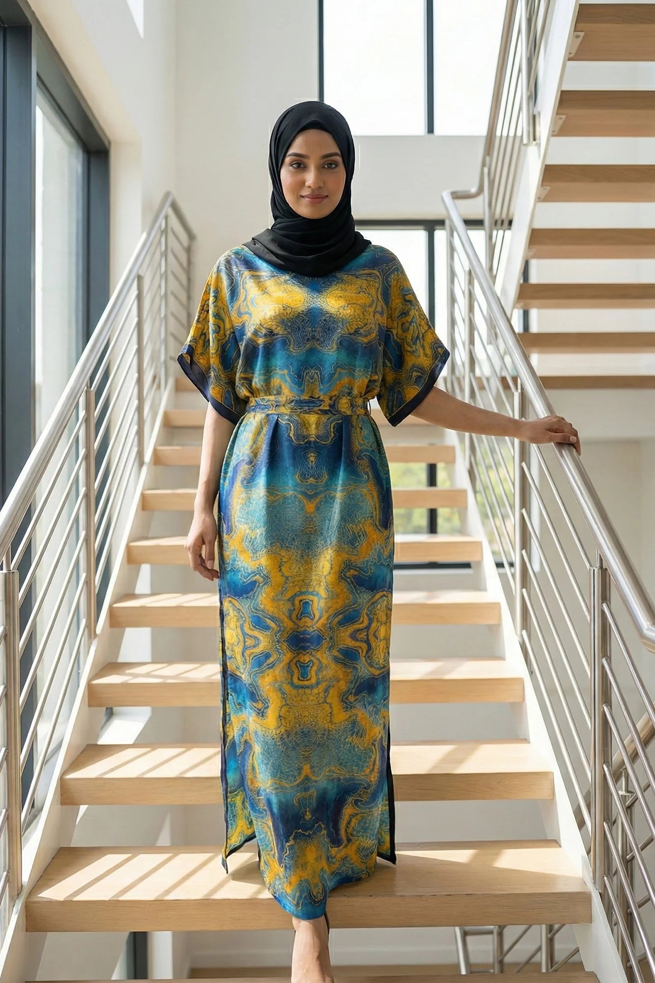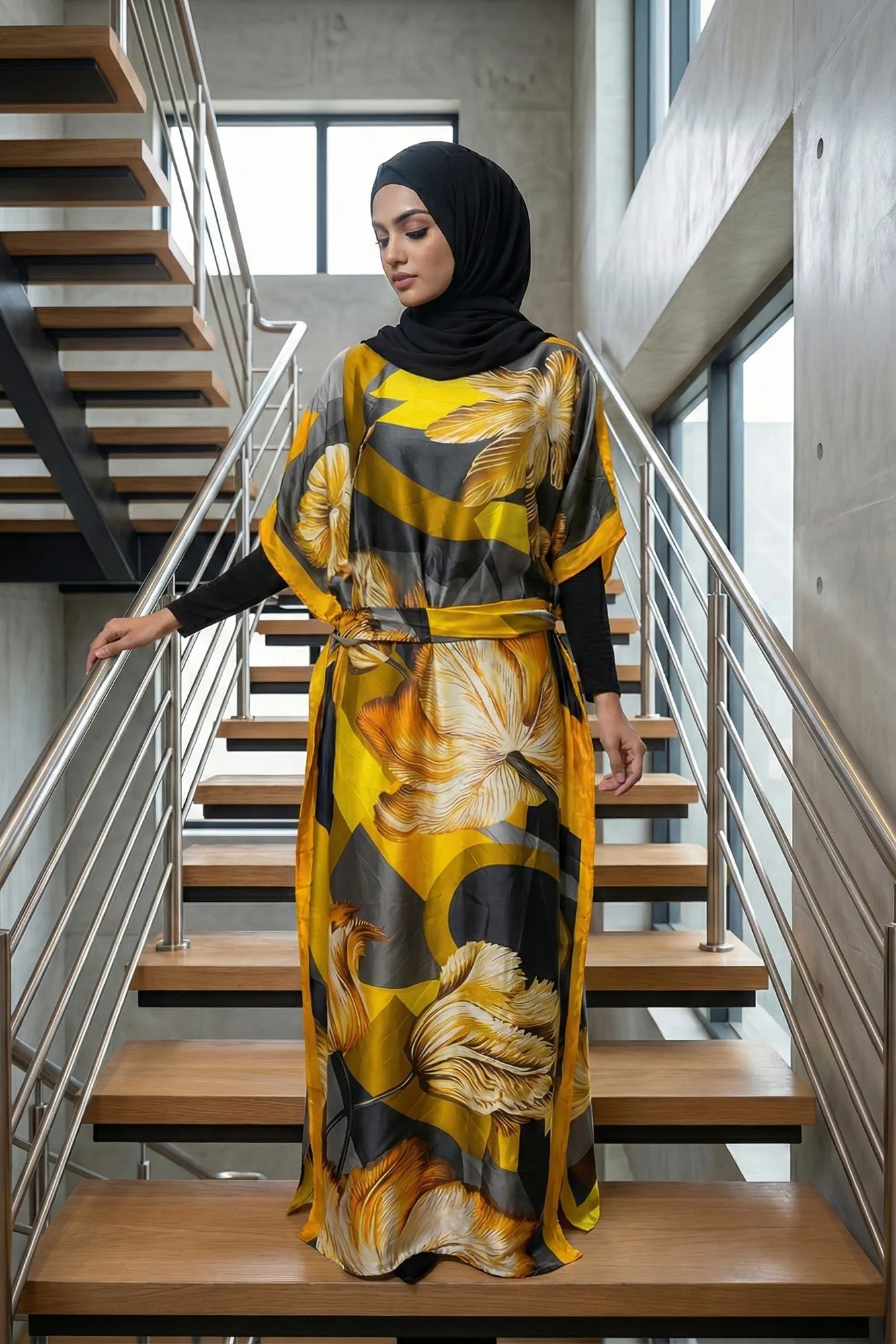 Luxe Jacquard Satin Kaftan with Print Detail