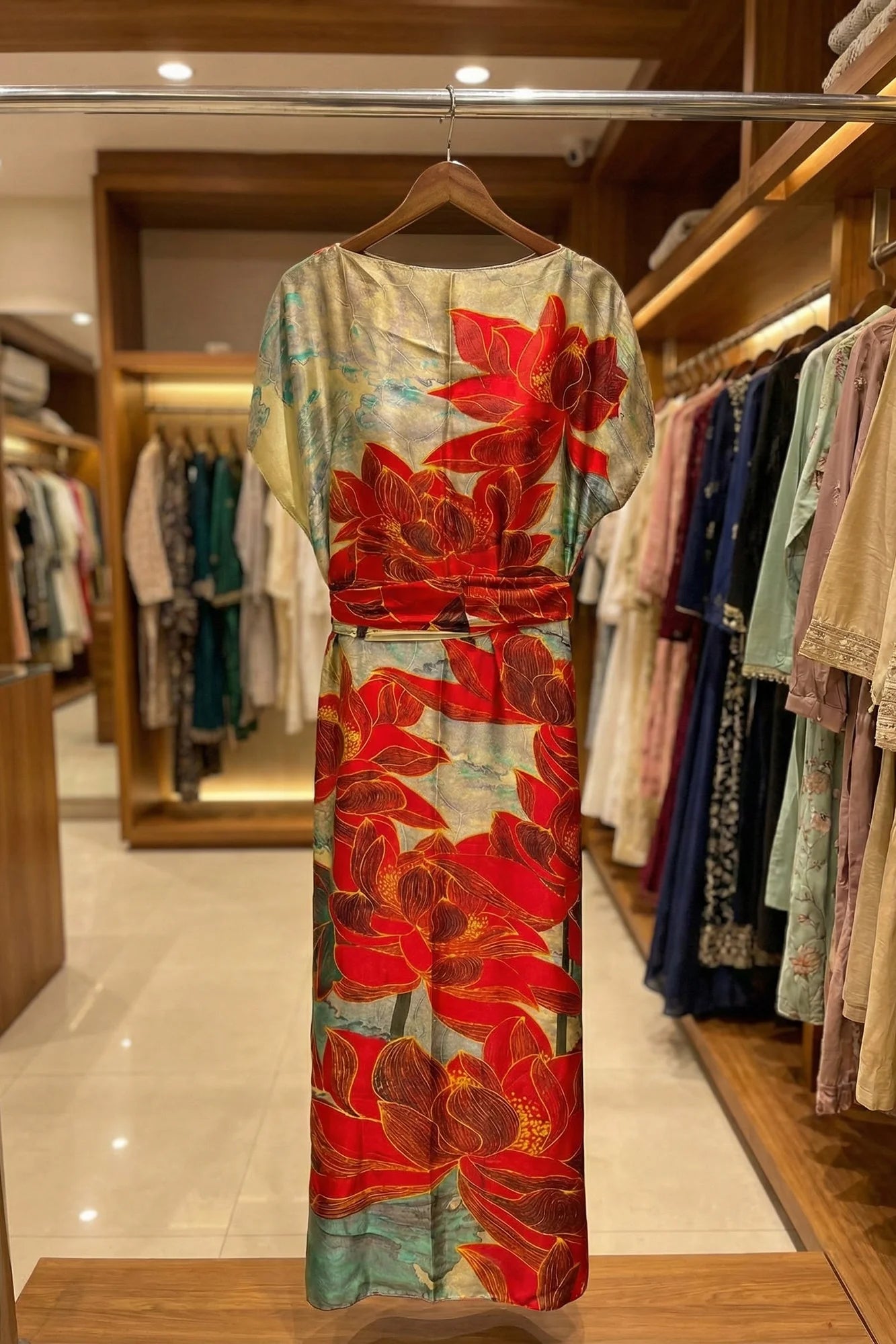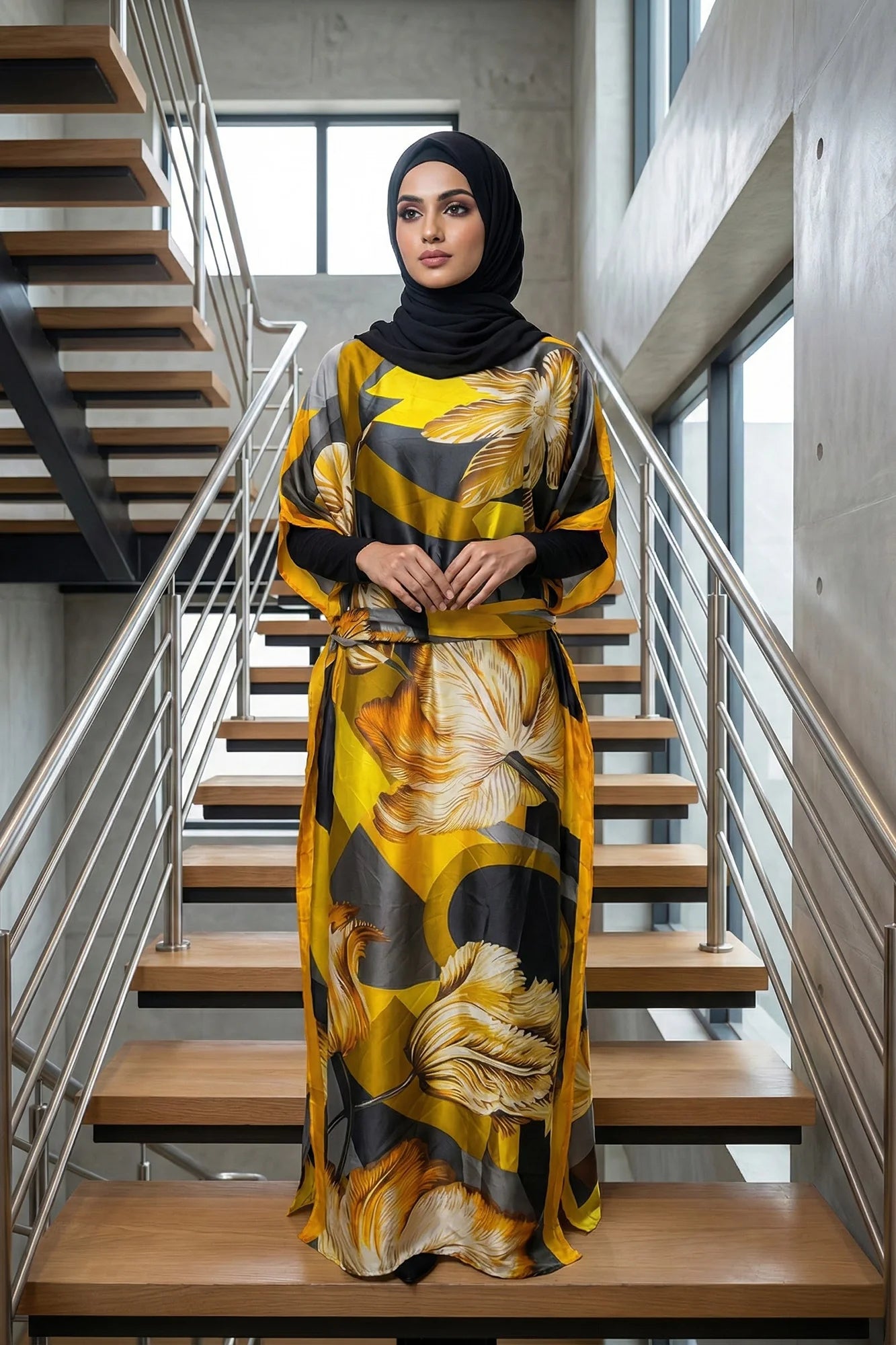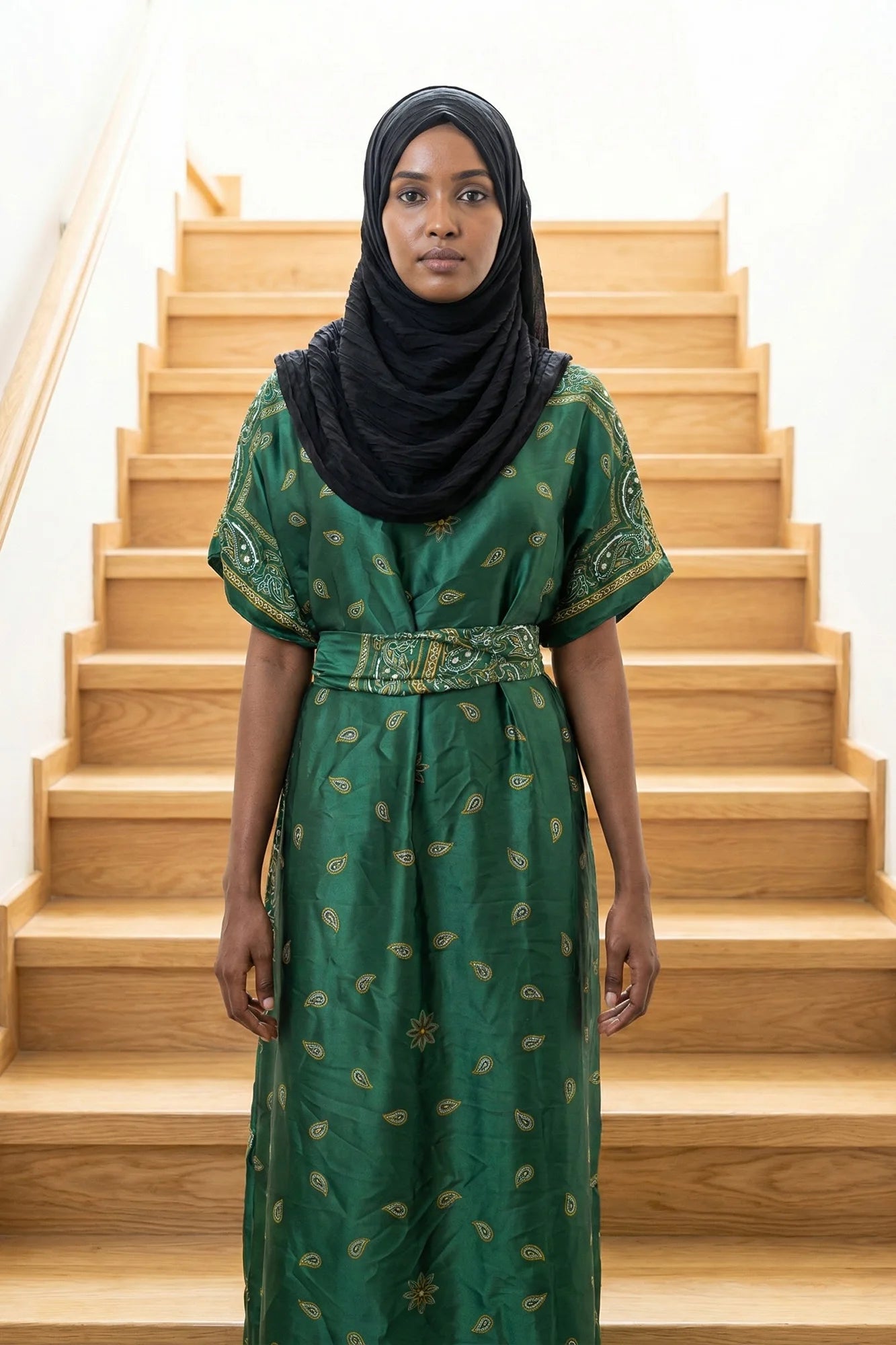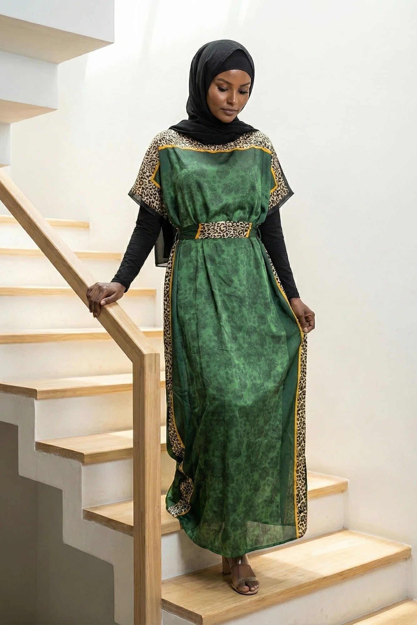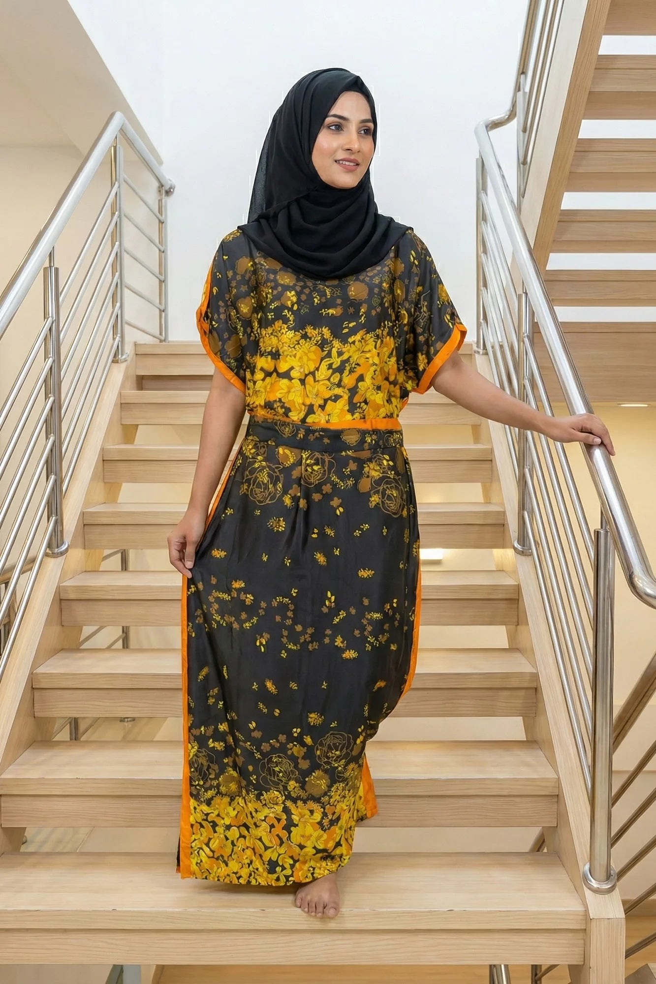 Luxe Jacquard Satin Kaftan with Print Detail