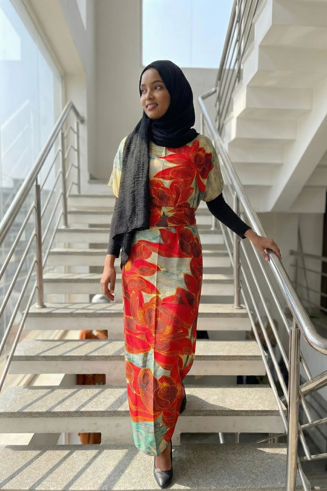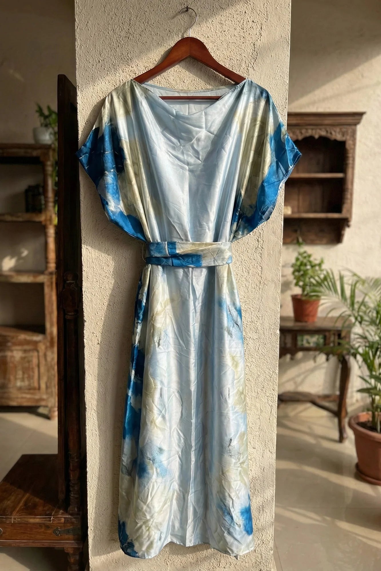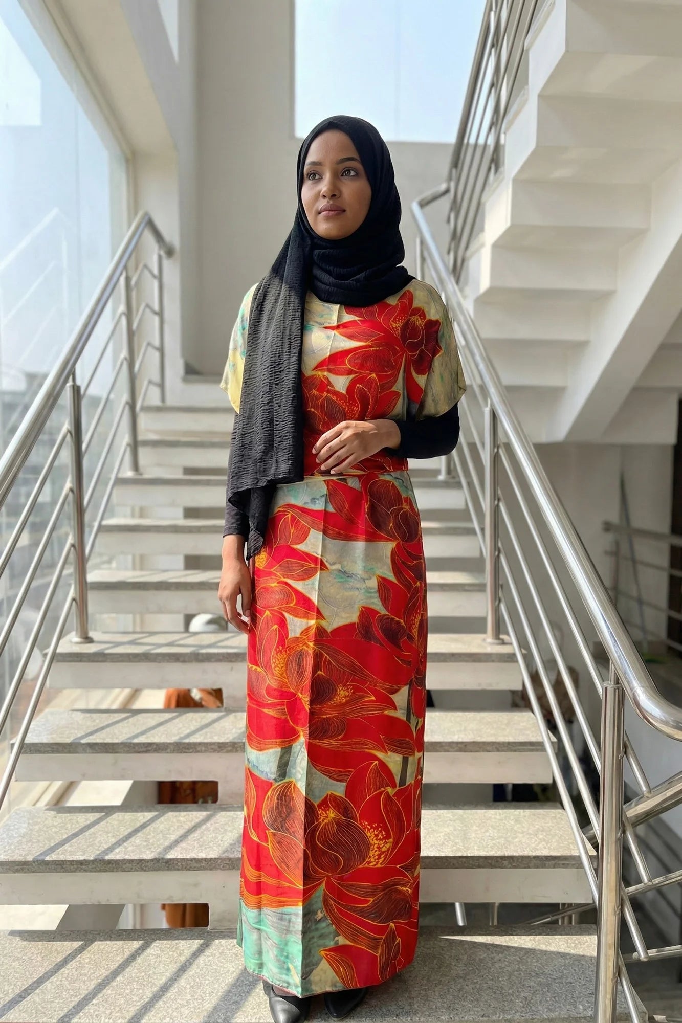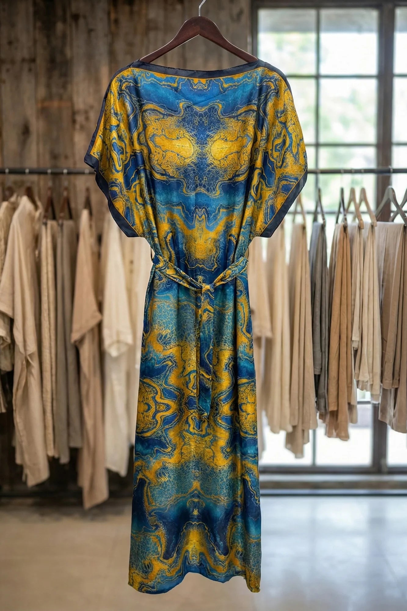 Luxe Jacquard Satin Kaftan with Print Detail