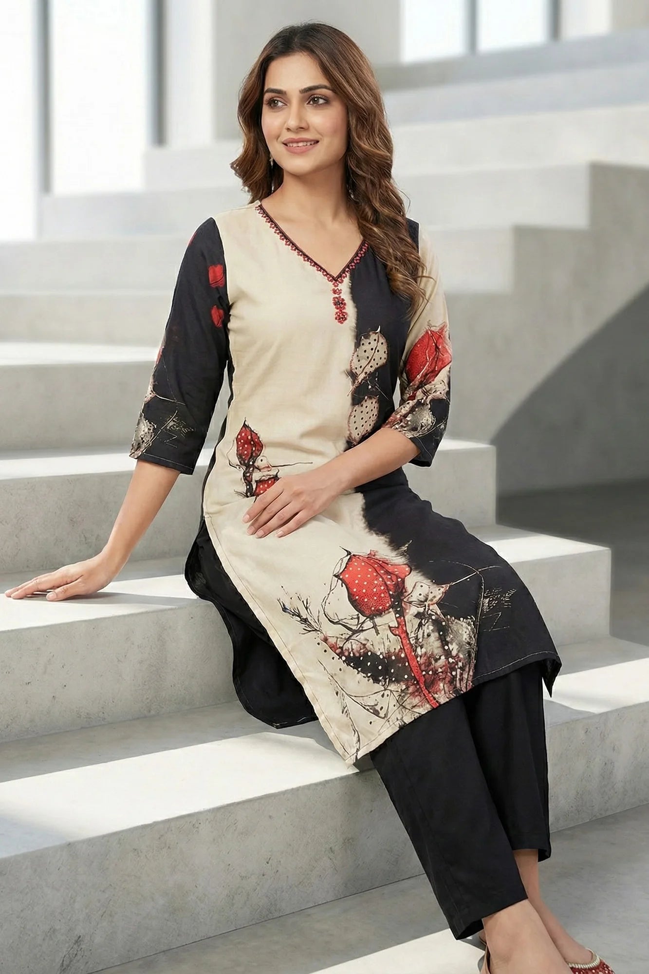Elevate your everyday style with this chic two-piece ensemble featuring a striking half-and-half color block design in beige and black.... Read more