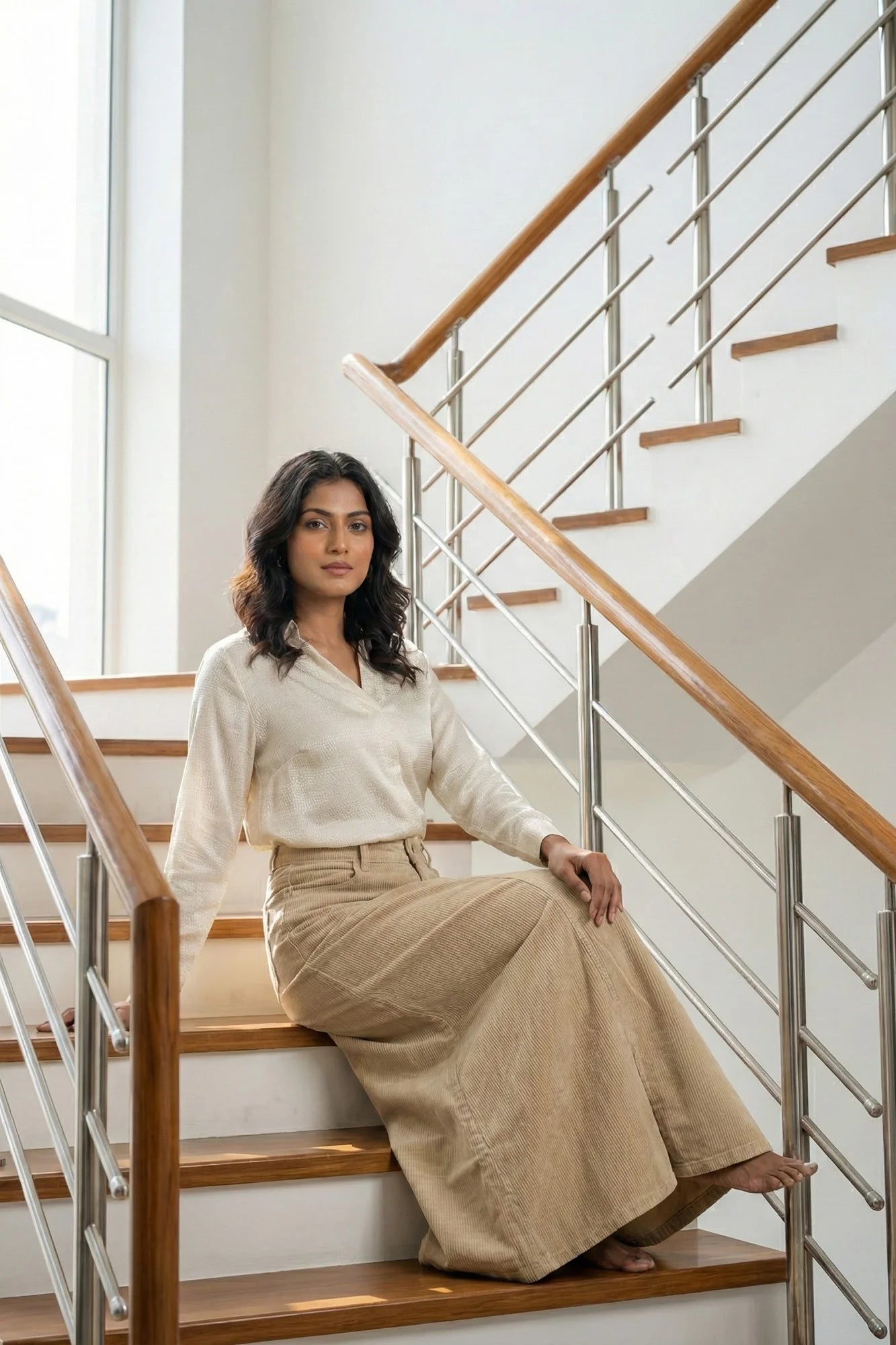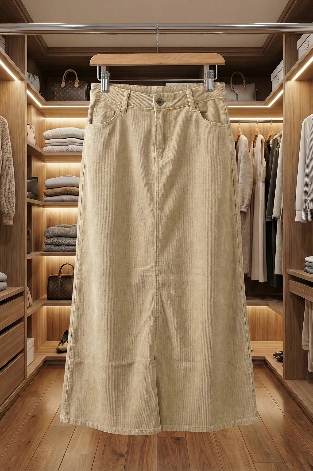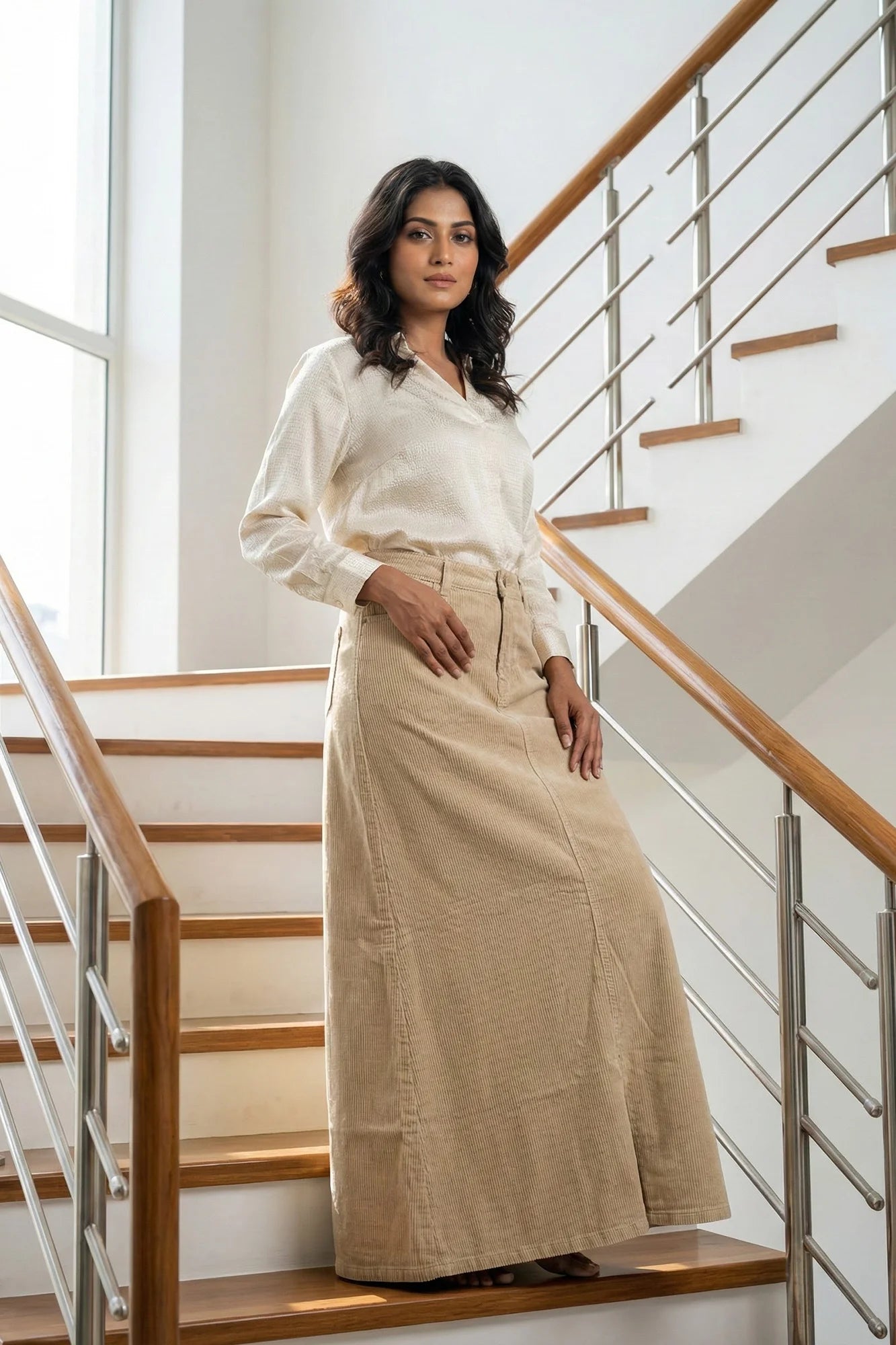 This floor-length maxi skirt offers a timeless silhouette with a modern touch. Crafted from durable, structured fabric, it features a... Read more