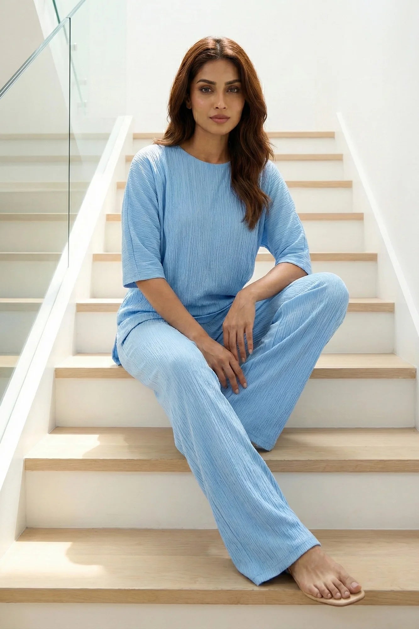 Sky Blue Crinkled Breeze Co-ord Set
