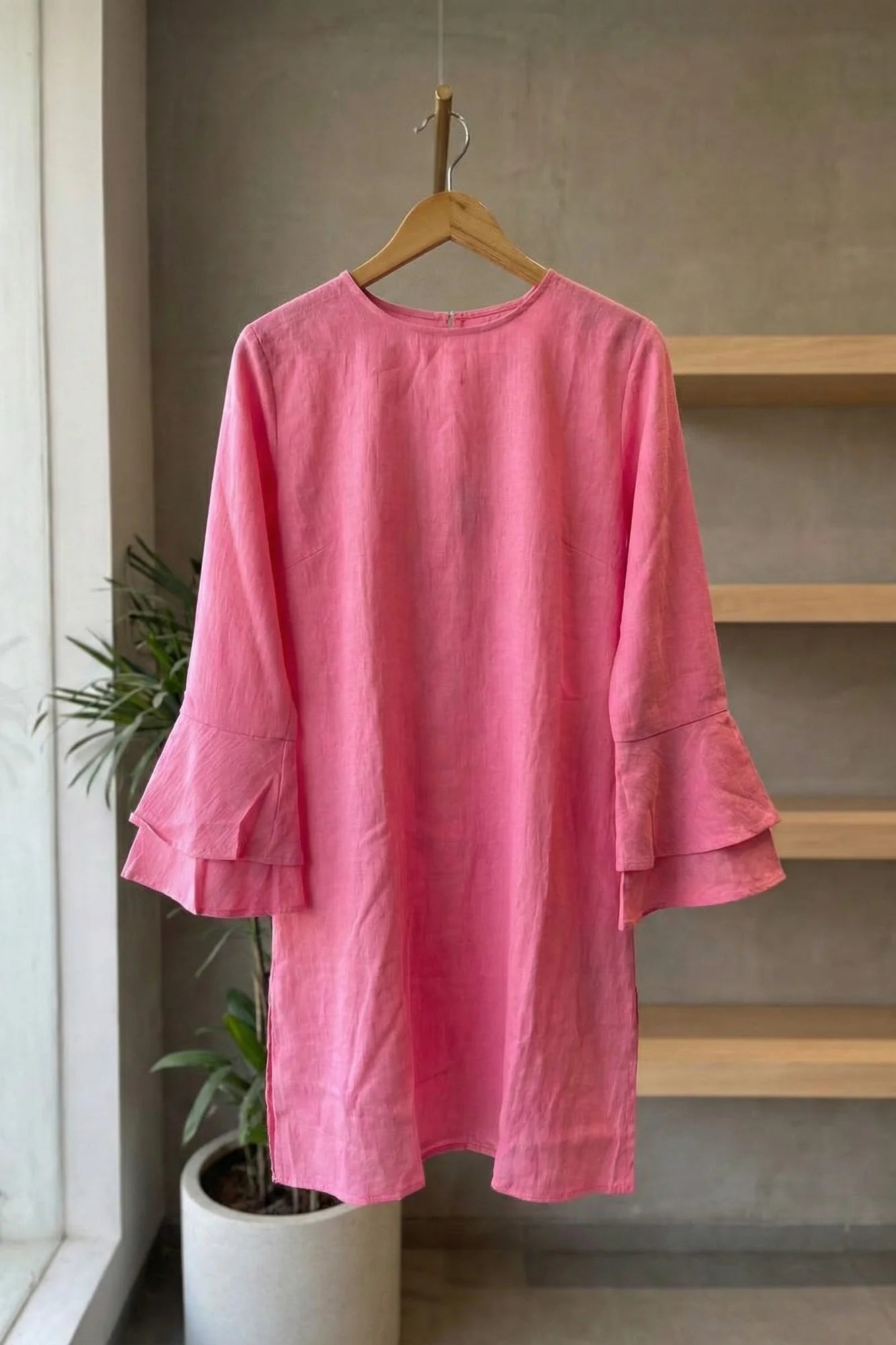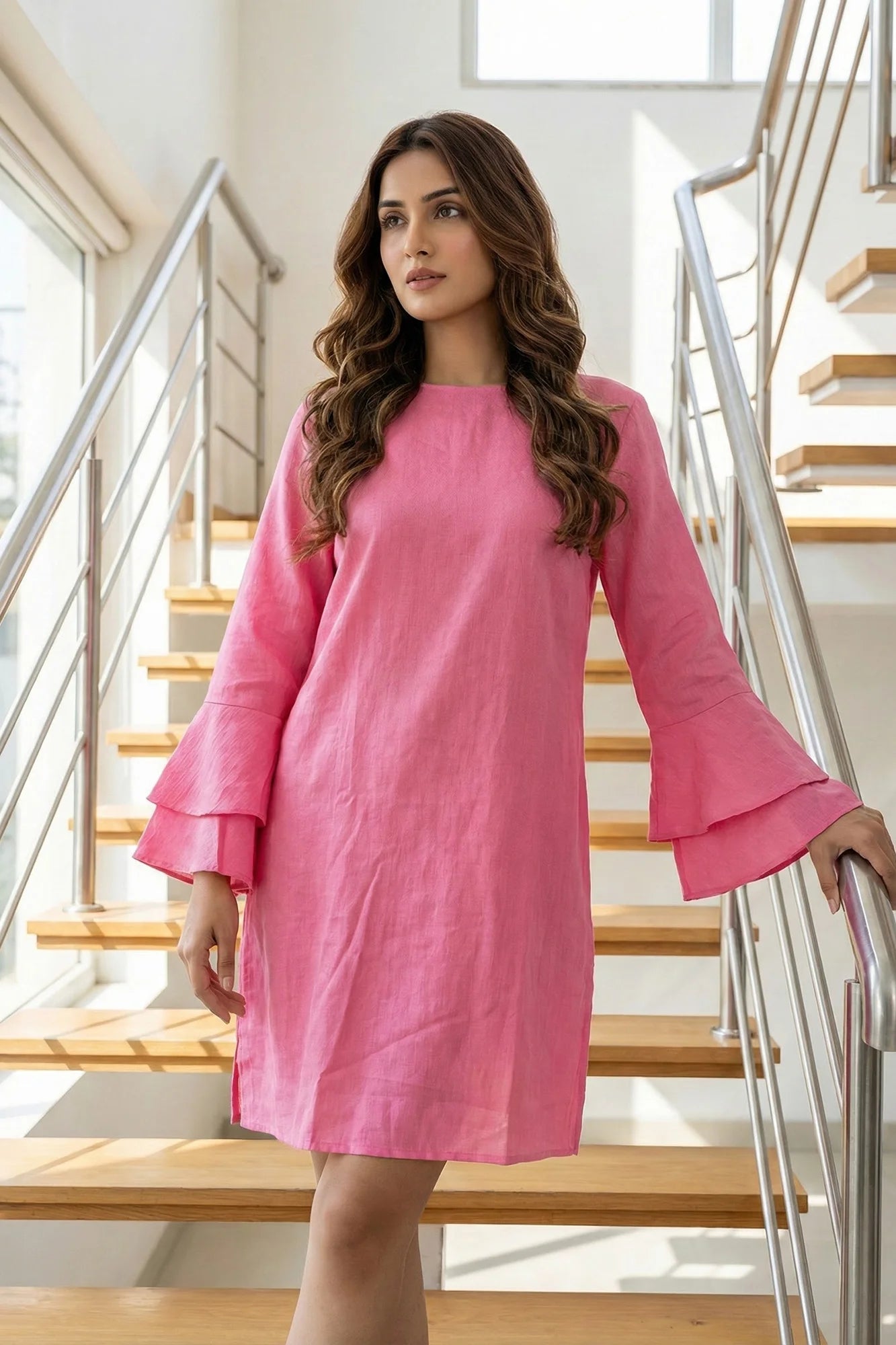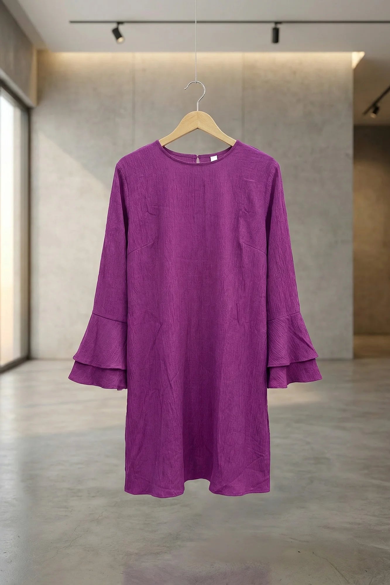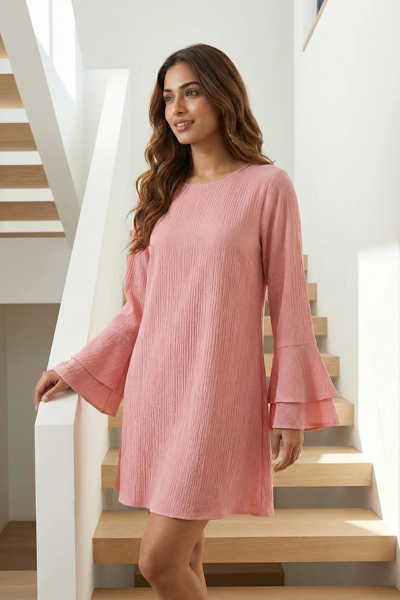 Textured Tiered Bell Sleeve Shift Dress